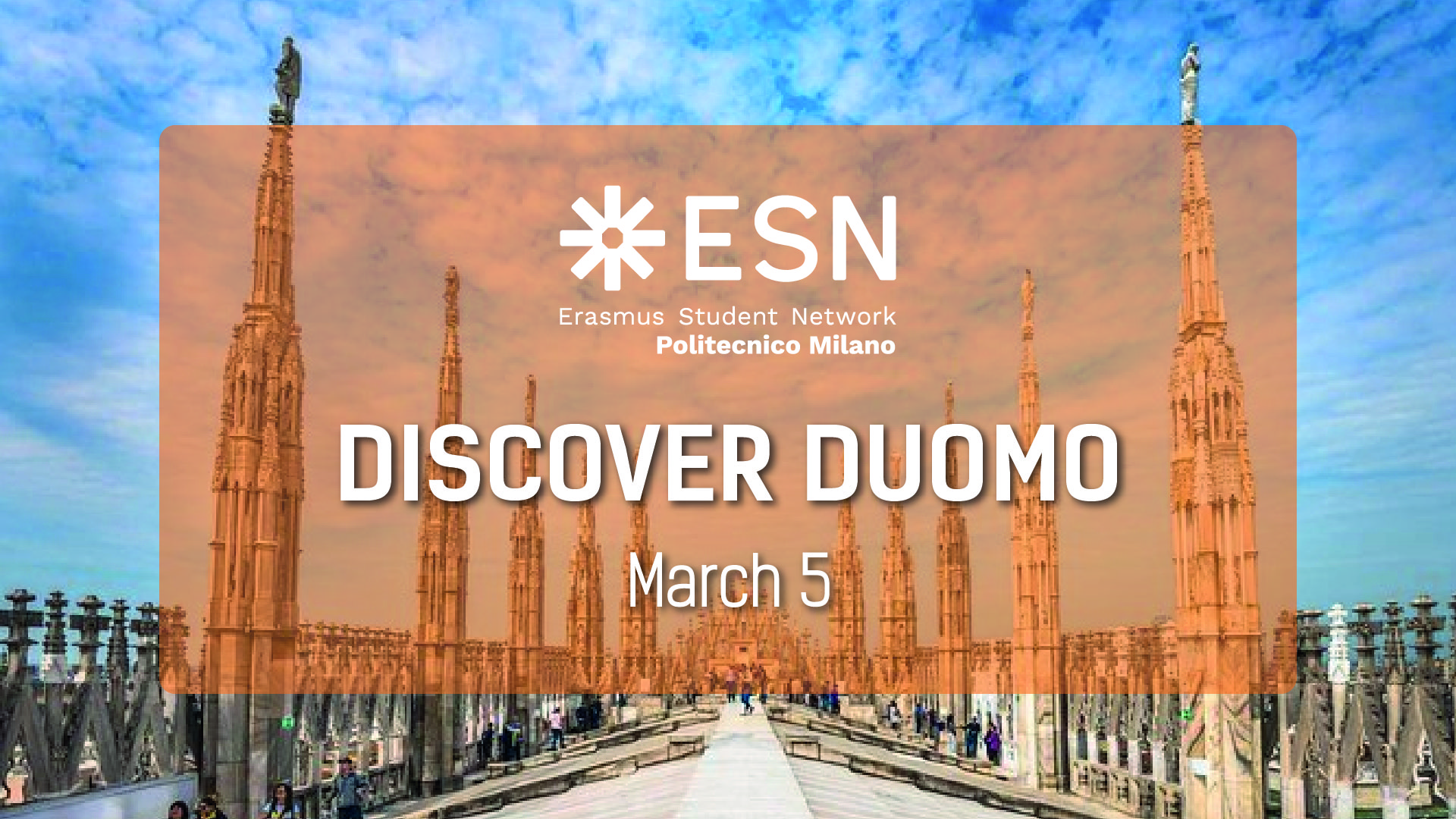 Once you’ve filled up the form, if spots are still available you will receive an email so you can come to our offices ( register online before coming! http://esnpolimi.it/site/our-offices ) to confirm your place starting from MONDAY (1st March)!